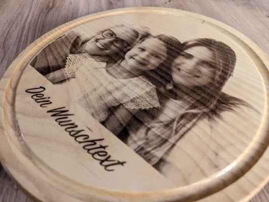 Rundes Schneidebrett mit Foto und Wunschtext - Cutting Board, Frühstücksbrett, Vesperbrett