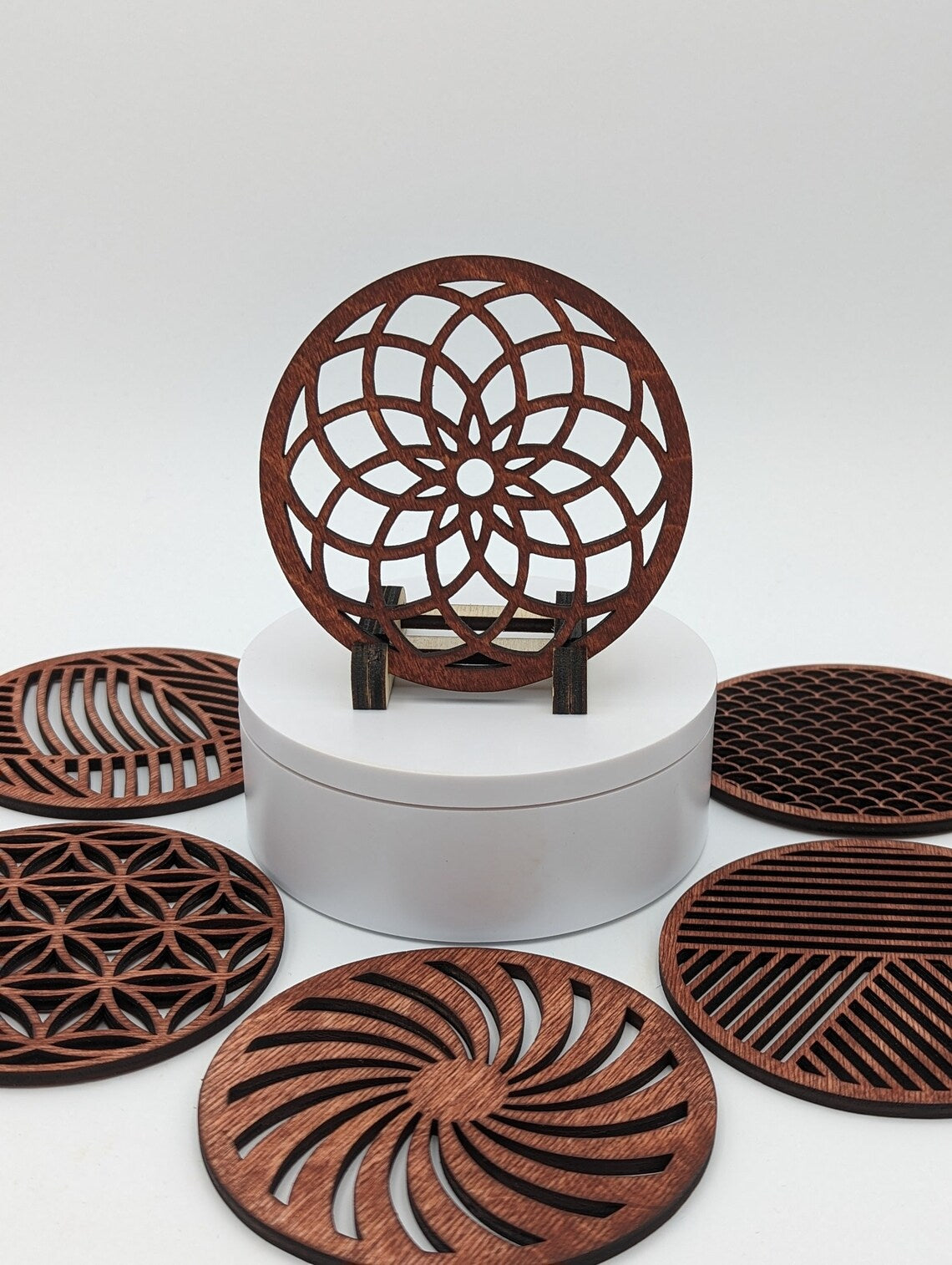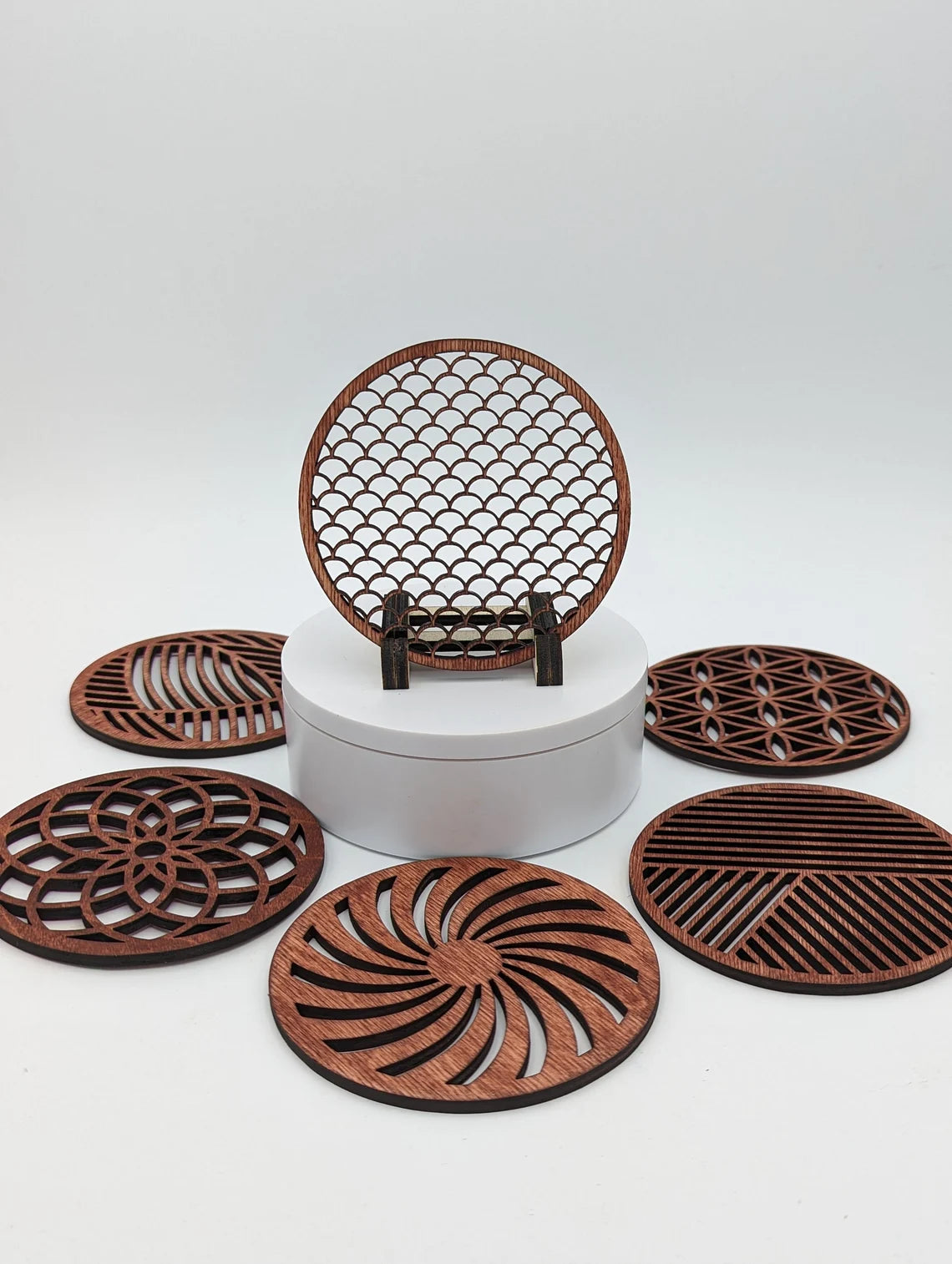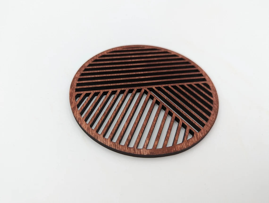 Dieses Set besteht aus sechs runden Untersetzern mit einem Durchmesser von 10 cm, die mit einem Lasercutter aus hochwertigem Birken-Holz geschnitten werden. Das Material ist nicht nur robust, sondern verleiht auch eine warme und natürliche Atmosphäre. Die filigranen Baumstämme auf dem Ständer sind einzigartig und geben dem Set eine rustikale Note. Das Design wird garantiert in Ihrem Zuhause zum Hingucker werden.