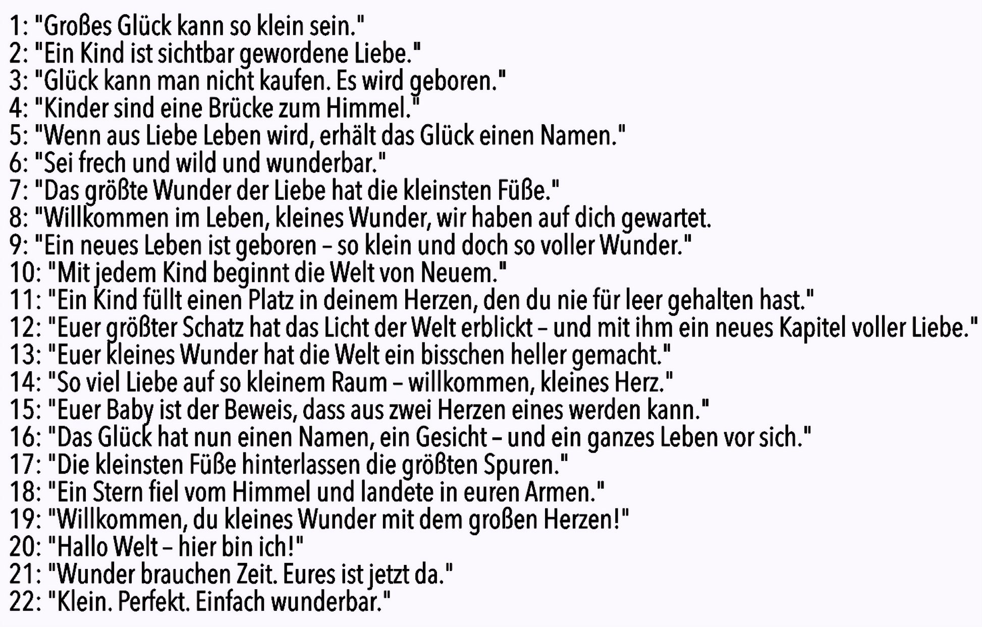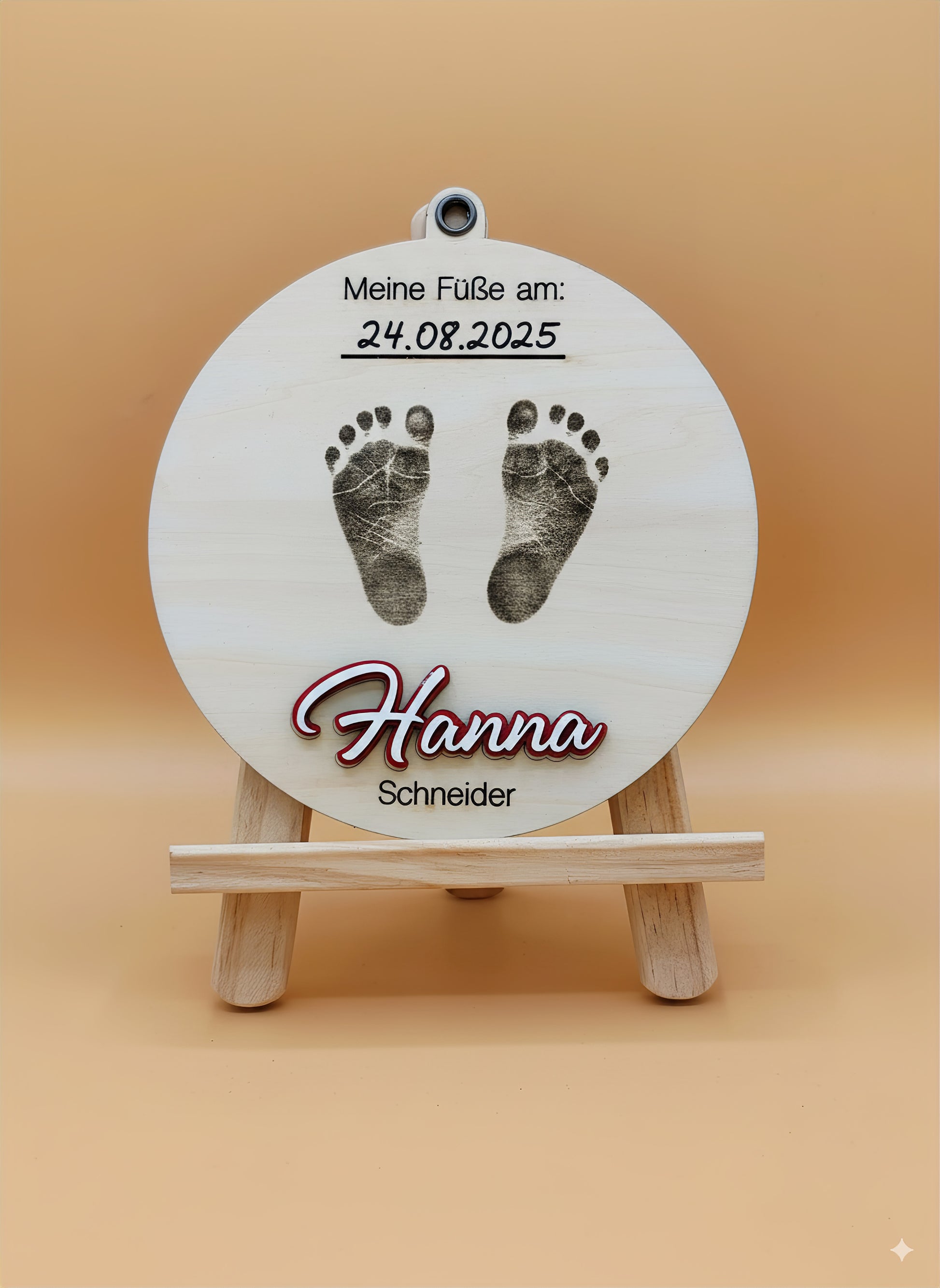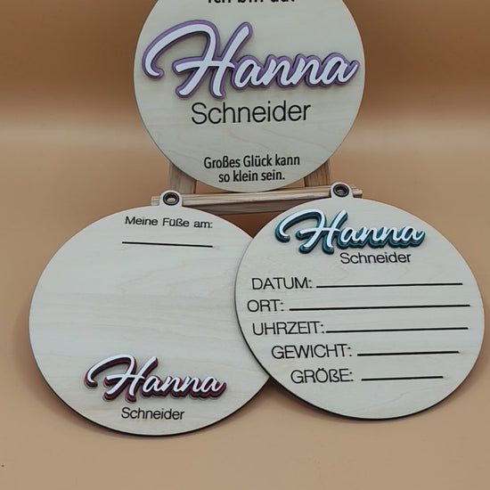Beim Bestellen bitte den gewünschten Namen sowie die bevorzugte Farbe für den 3D-Schriftzug angeben. Die restlichen Daten wie Geburtsdatum, Uhrzeit, Größe und Gewicht können anschließend individuell mit einem Stift ergänzt werden. Auf einem der Schilder ist zudem Platz für die Fußabdrücke eures Babys – ein liebevolles Detail mit Erinnerungswert.