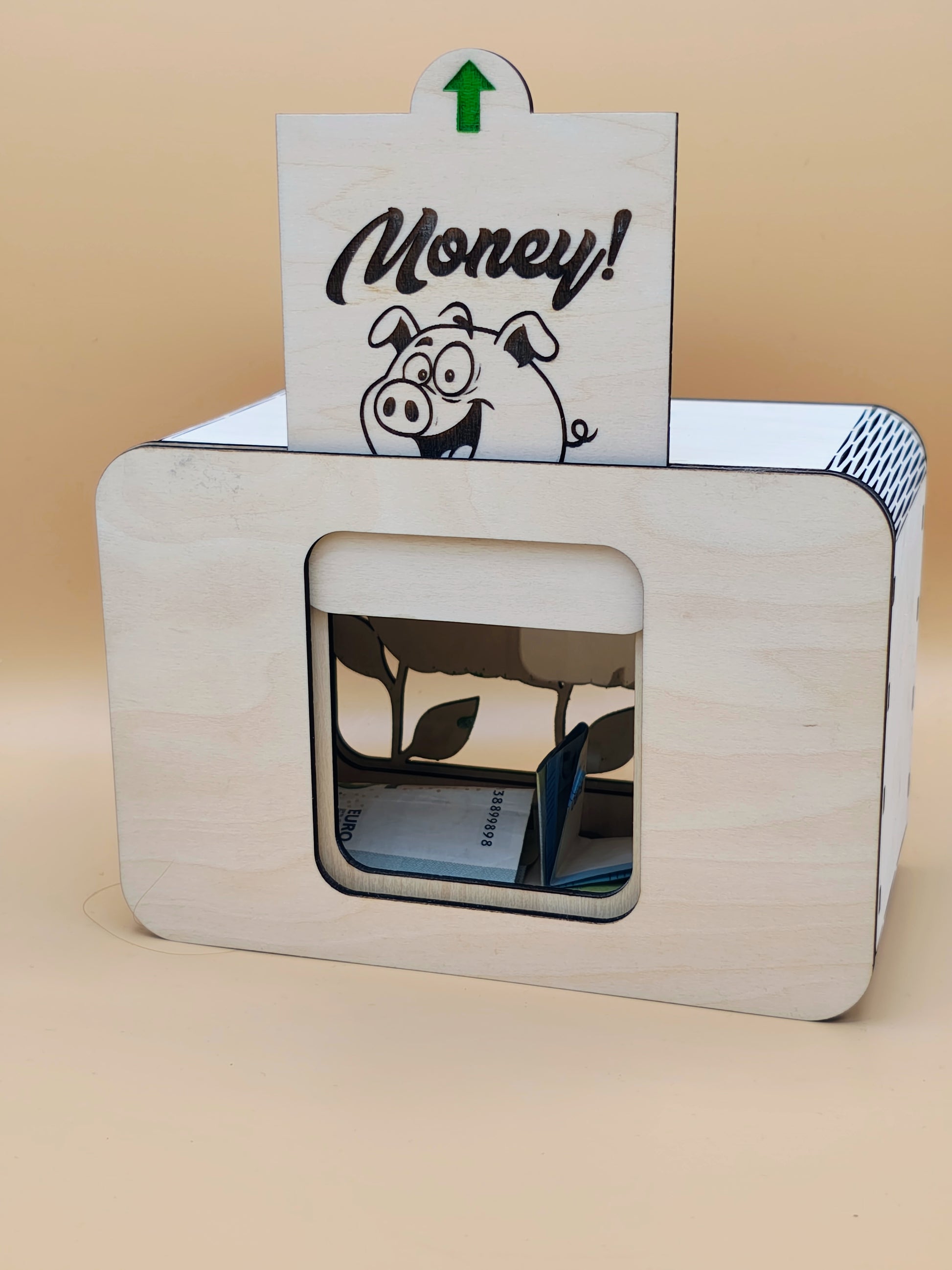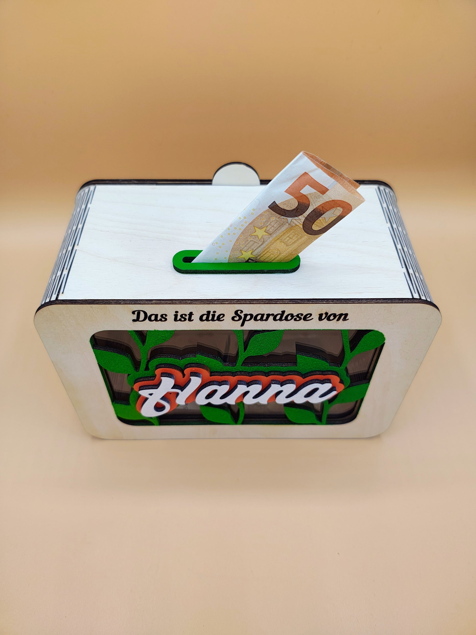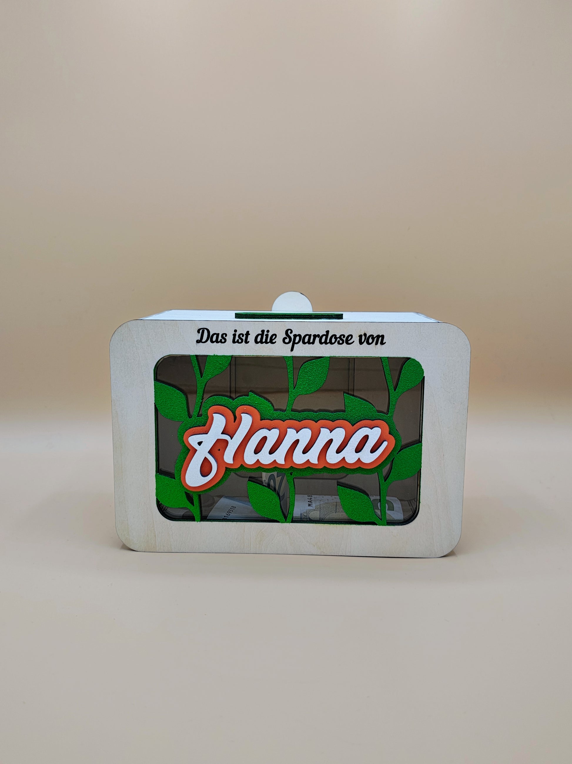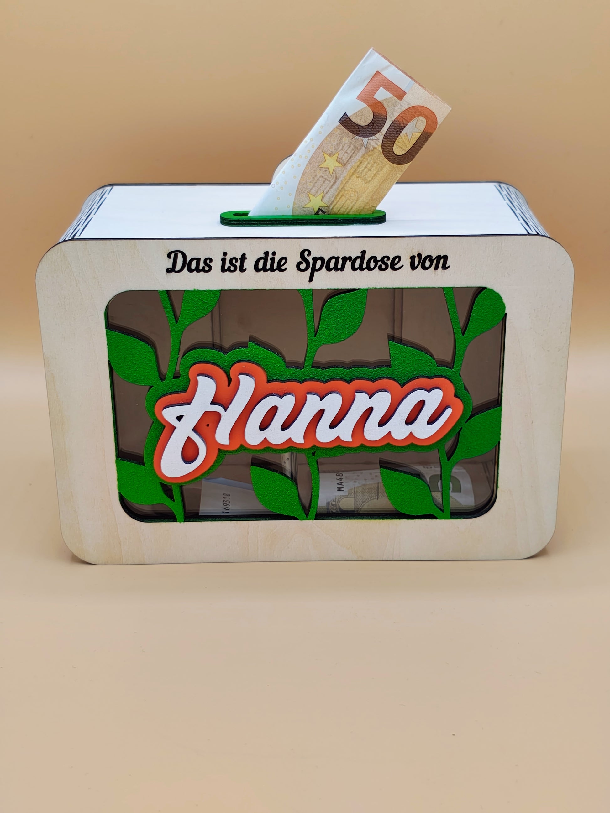 Das wunderschöne Design mit Sichtfenster macht das Sparen motivierend und spannend! Der Name des Kindes wird in einem einzigartigen Schriftzug aus mehreren Lagen Birkenholz vor dem Sichtfenster in strahlenden Farben präsentiert. Durch die individuelle Personalisierung mit dem Namen des Kindes und niedlichen Wunschmotiven wird jede Sparbüchse zu einem ganz besonderen Unikat – perfekt als Geschenk zum Geburtstag, zu Weihnachten oder zum Schulstart.